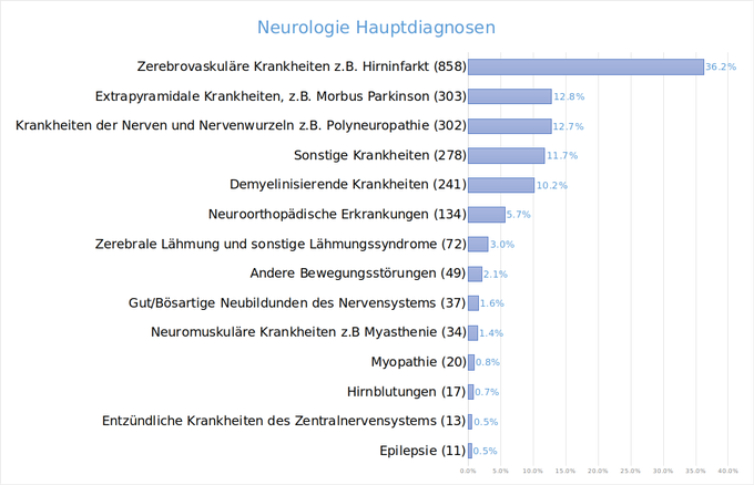 Nachstehend finden Sie eine Auflistung der Hauptdiagnosen, die an der Klinik Pirawarth im Jahr 2018 behandelt wurden.